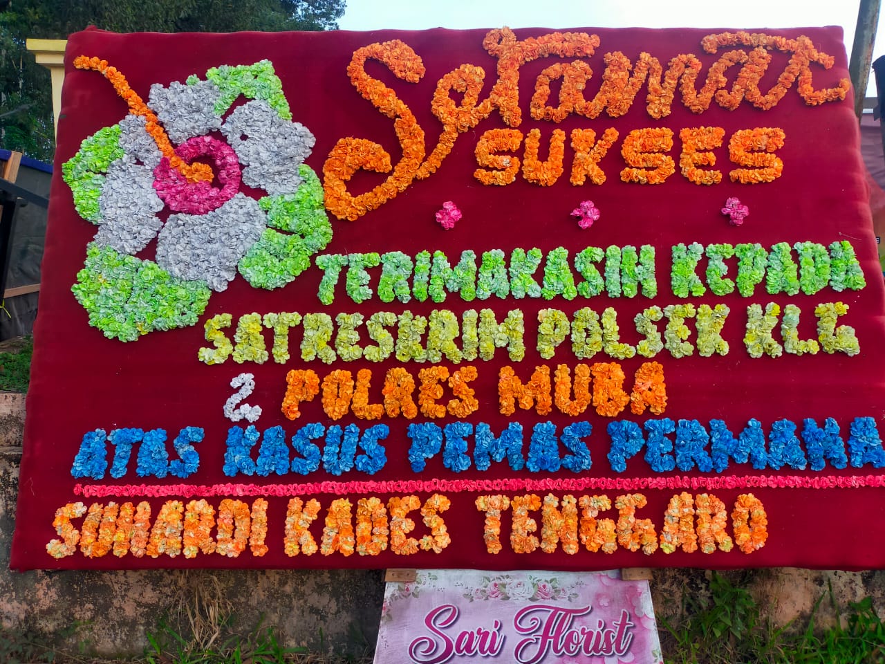 Sekayu – Pagi-pagi hari ini Selasa (28/05/2024) tampak didepan halaman kantor Mapolsek Keluang berjejer papan bunga ucapan terimakasih dari masyarakat atas keberhasilan Sat Reskrim Polres Muba dan Polsek Keluang mengungkap kasus pembunuhan.