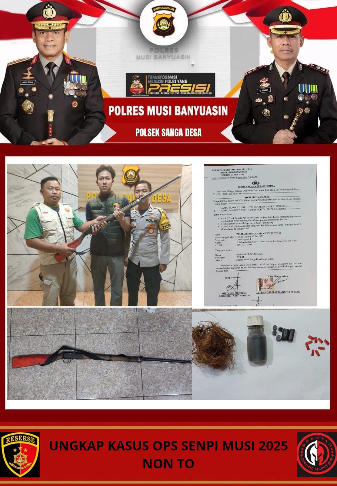 Polsek Sanga Desa Terima Dua Pucuk Senpi Rakitan dari warga dalam Rangka Ops Senpi Musi 2025