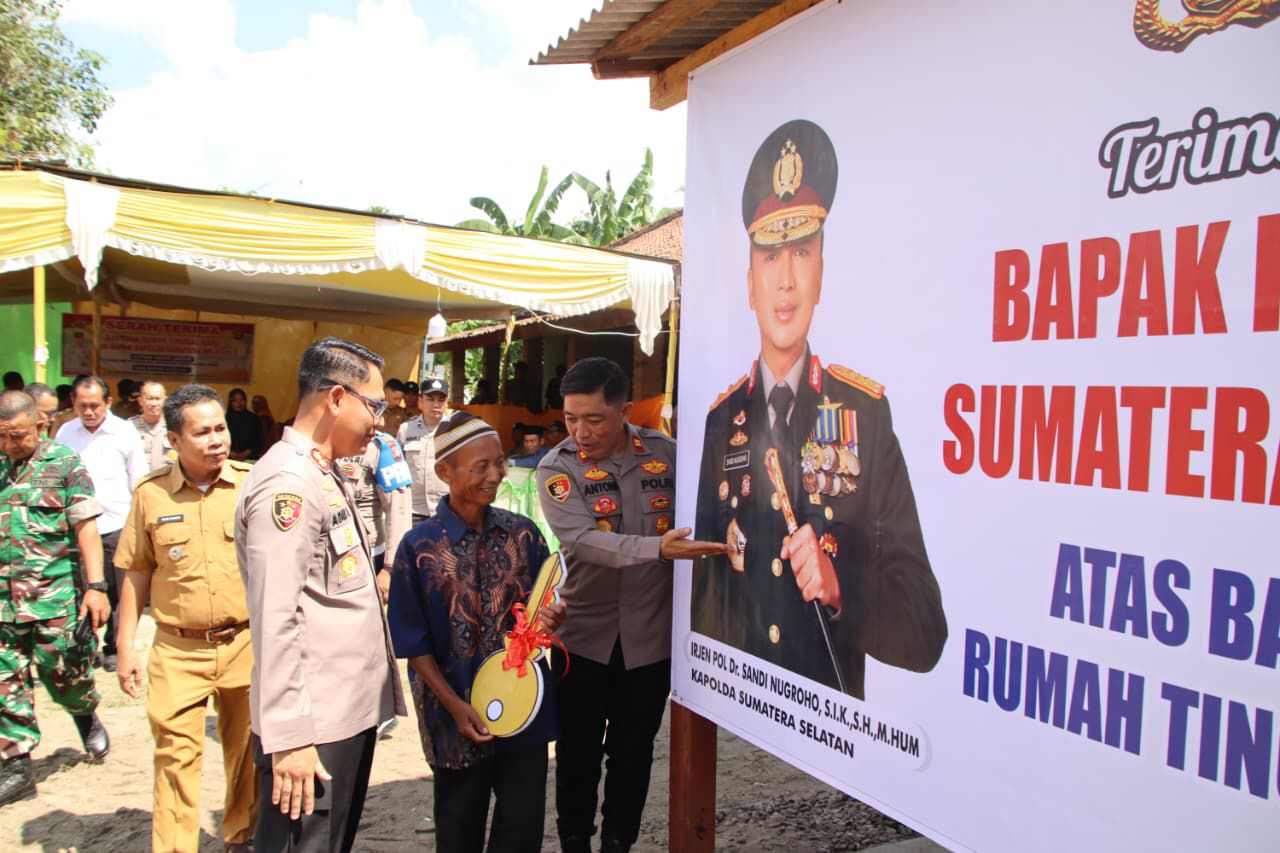 JAAMSUMSEL.COM, OKU TIMUR — Polda Sumatera Selatan kembali menunjukkan komitmen nyata dalam menghadirkan Polri yang humanis dan berkeadilan melalui program bantuan sosial berupa pembangunan rumah tinggal layak huni bagi warga prasejahtera. Kapolda Sumsel Irjen Pol Dr. Sandi Nugroho, S.I.K., S.H., M.Hum. memberikan bantuan rumah tinggal baru kepada dua petani lansia di Kabupaten Ogan Komering Ulu Timur.